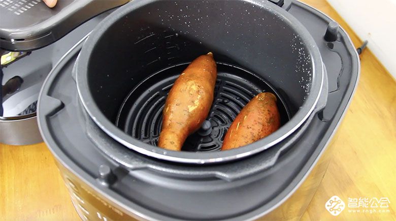 我们直接在功能区选择“烤红薯”,显示屏提示需要50分钟的时间,这对于普通空炸锅一个多小时的时间来说,烹饪速度至少提升了50%。我们剥开烤好的红薯,发现烤的非常均匀,红薯外皮没有焦,里面也没有一点硬心,这道菜绝对是一百分!