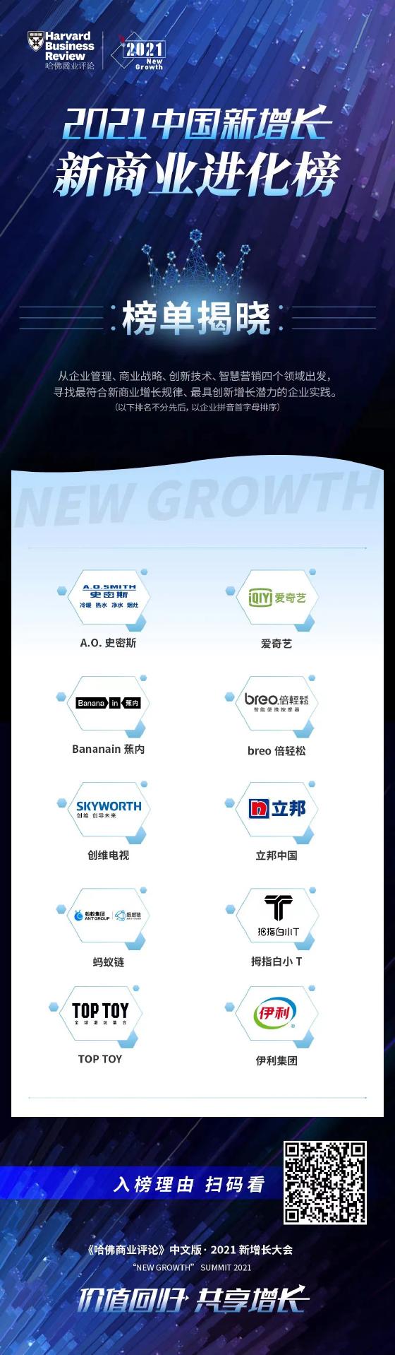 近日,《哈佛商业评论》在“2021新增长大会”上公布了五大“中国新增长年度榜单”,这是哈评第三年以榜单的形式邀业界与学界共话商业新增长。