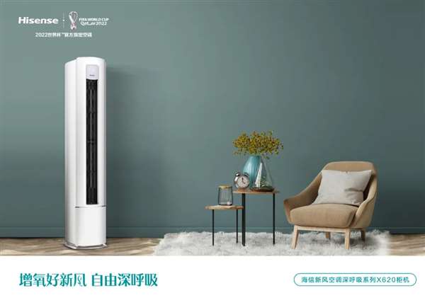 作为深呼吸系列中的鲜氧新风空调,2022年世界杯官方定制空调——海信新风空调X620以微正压双驱动新风技术引入室外新风,无需额外扩孔安装,柜机以65m3/h新风量和1550m3/h大风量实现高效换气,挂机60m3/h新风量,升级大风口加上混合拂面新风,轻松带来满屋清新。风量澎湃,让屋内迅速实现制热制冷的同时,搭配新一级能效,新风功能还可独立开启,省电更省钱。柜机独创贝塞尔波浪紊流导板,提供54种独立风向立体风,上下独立分区送风,挂机升级大风口,瀑布级制冷,地暖式升温,一键防直吹。