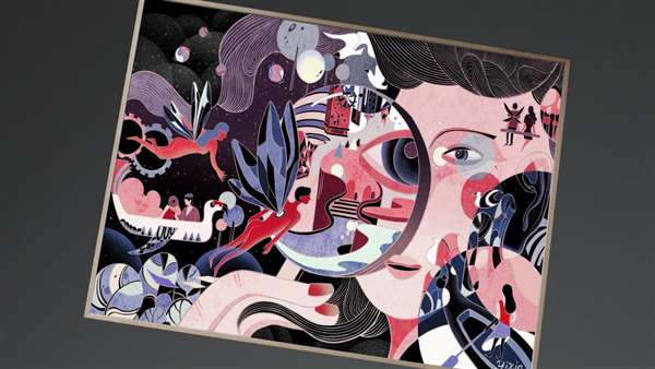 画作中,现实被解构和重新想象,以深刻的方式进行传达,并捕捉观众的想象。而当短片中曾奕心的画作出现在“无缝贴墙”的创维壁纸电视中时,创维壁纸电视凭借优秀的画面表现,将色彩描摹出了斑斓之状,也将插画家想象派的设计活灵活现地跃然于壁纸电视的画面之上。
