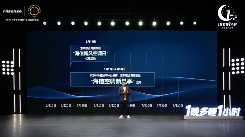据奥维云网监测数据,2024年,海信新风空调全渠道销额占有率第一;2025年1-4月,海信新风空调全渠道销额占有率持续第一。为回馈广大消费者,即日起在京东购买海信新风空调,享国家补贴与以旧换新至高立减35%优惠,还可保价618。京东将在5月17日,联合海信推出“海信新风空调日”优惠活动,自5月17日开始,京东和海信将持续开展“海信空调新风季”活动。海信作为2025 FIFA世俱杯全球官方合作伙伴,此次将与京东携手,共同守护球迷看球清凉。