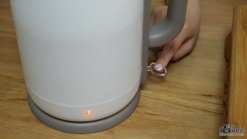 从外观上来看,这款电水壶就像是一个塑料机身,实际这是由于它采用内外双层壶体,pp塑料包裹内胆,留有中间隔热层,这样可以做到物理保温还可以防烫,非常贴心!