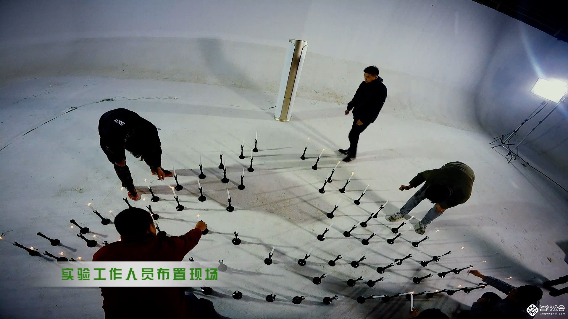 首先沿着空调量出120度宽15米远的范围,在局域内均匀的摆满蜡烛。通过测试可以看到,海信小智空调可以吹到15米范围内所有的蜡烛,送风距离非常远。