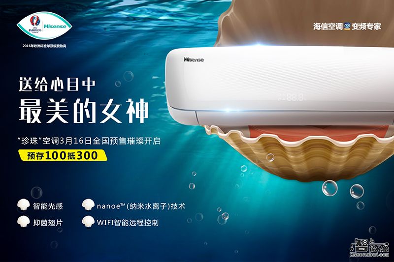 智能、互联网的技术创新正在改变传统空调产业,智能空调产品的升级、革新速度超乎行业预期。3月16日,可光感控制风速的海信“珍珠”空调(Q100)在2016年上海AWE上大放光彩后,紧接着于全国家电卖场同步璀璨预售,它以智能、美容的全新体验方式给市场和用户带来了惊喜,领航空调产品的智能化进程。