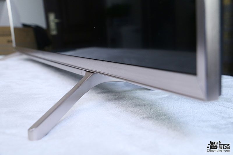 首先我们来说说颜值,在这个方面虽然具有一定的主观性,你喜欢的不见得是我喜欢的,不过大家都喜欢的肯定就能说明颜值自然也不低。我们测试的这款海信电视采用了北欧极简设计理念,超窄的边框仅有0.8厘米宽,1.2厘米厚,让人的眼球全部集中到液晶屏幕中。从侧面开,机身也采用超薄的设计,无论是边框还是背板都采用了拉丝金属,品质感十足。