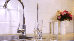 首先是TDS测试笔测试,将TDS测试笔分别放入等量的自来水和过滤后的水中测试,我们看到,将TDS测试笔放入自来水杯中仅2秒的时间数据就升至169左右。然后我们将TDS测试笔放入九阳JR5001净水机过滤后的水中,数值显示只有4左右,靠数据说话,哪个水干净便一目了然。