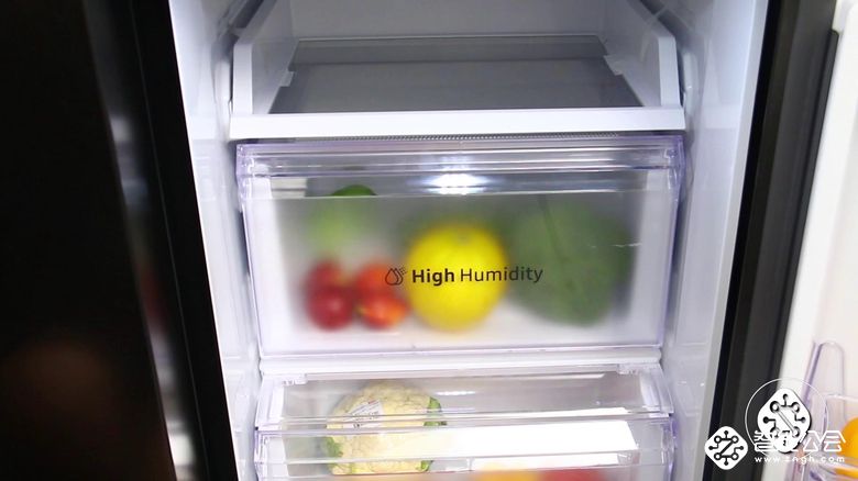 如果食物类型过多的话,在分类存放上三星也已经考虑到了。冰箱配备了变温室,右下方的变温室设置了干燥区和湿度区两个抽屉,提供“果蔬、饮料、肉&鱼、冷藏”4种储鲜模式,可根据食材种类设定储鲜模式,呵护食材新鲜。不同于其他冰箱的十字、法式或者双开门设计,三星新品冰箱对开三门的设计也是它的亮点之一,这样的设计就让冰箱形成了冷冻室、冷藏室、变温室三个独立的温区,让每种食材都可以找到适合它的位置。