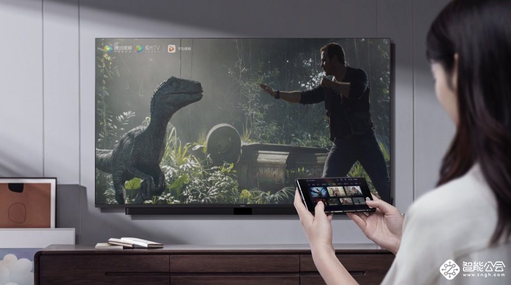 当然,这款华为智慧屏还把自家的Huawei Share“一碰投屏”技术应用到了这里,将手机与遥控器轻轻一碰,随着“sou”的一声,手机的画面就会传送到电视中,虽然手机界面显示的是竖屏画面,但是如果我们浏览宽屏图片的话,电视会智能的将画面铺满全屏。值得一体的是,对于游戏玩家来说,把手机上的游戏画面传送到华为智慧屏上,体验感那叫一个畅汗淋漓,不仅仅是65寸的大屏幕看起来视觉效果更刺激,最重要的是几乎体会不到延迟感与画面的卡顿感。