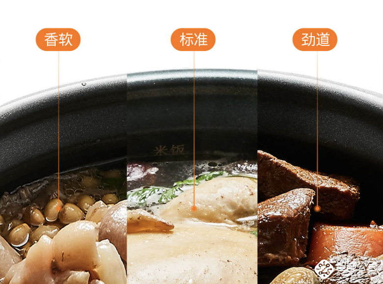 香软、标准、劲道三种口感可调;智能保温预约,上班之前预约,下班回到家就可食用,“没时间”不再是吃不好的借口;