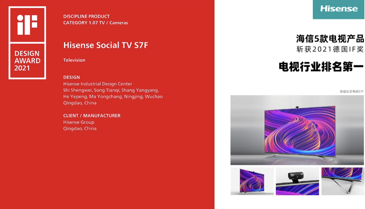 本次海信电视获得5项iF设计大奖,这标志着海信电视不仅在画质方面领跑行业,在新产品设计方面也达到国际领先水平。