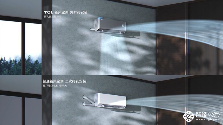 比如在最初的安装上,传统的新风空调一般在安装时都要另外加装一条新风管道,要在墙上再开一个孔,不仅麻烦而且影响墙体美观,破坏墙体结构。TCL C12智慧新风空调就转变了这个麻烦的安装思路,免扩孔巧妙地将新风管道和制冷管道有效结合,在不影响新风量及制冷制热的前提下,实现一孔安装,解决用户的担心和烦恼。