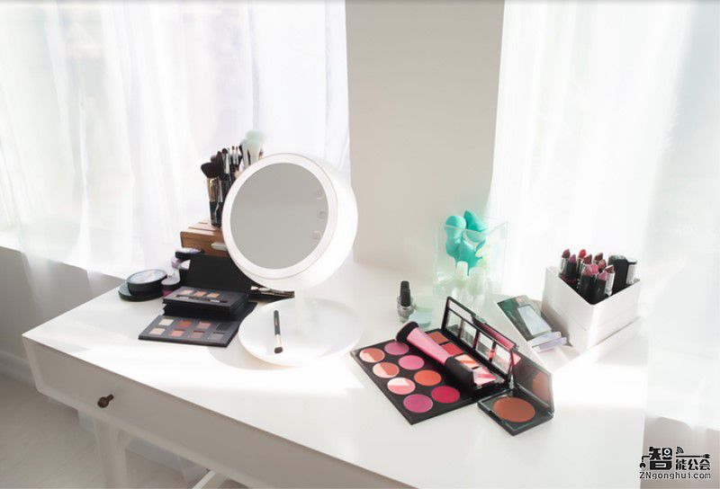化妆镜对于每一个爱美的女人来说都是日常必备品,普通的化妆镜也很常见。但是您是否能想象到一个集镜子、环形灯、台灯以及储物盘于一体的化妆镜会是什么样子的?