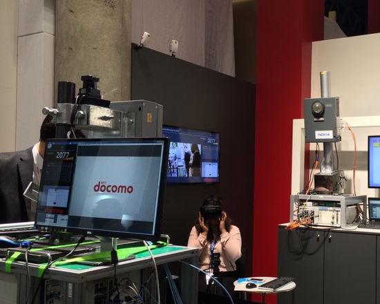 日本运营商 NTT Docomo 在展台的角落里,用诺基亚的通信基站搭建了一个微型 5G 网络。带上 Oculus Rift 头盔之后,你会看到两台设备之间无线电波的传输。这是人类肉眼无法看到的东西。