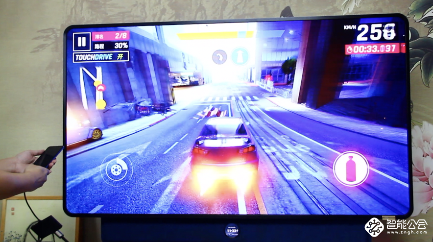 经过一番体验,我们可以通过在更大尺寸的电视屏幕来看手机上的视频,甚至玩各种大型游戏,而且还可以把手机设置为触控板,没有任何的卡顿和延迟,即使在玩竞速类的大型游戏的时,体验也非常流畅。