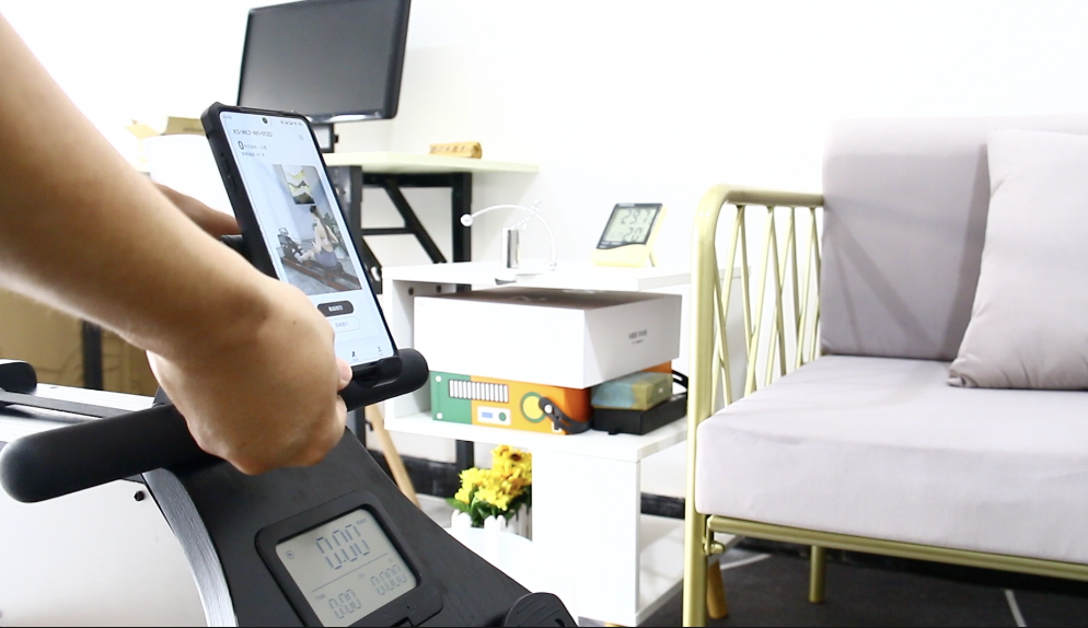 值得一提的是,金史密斯智能水阻划船机并不是一款纯硬件健身设备,在水箱上方有一个可折叠支架,高度和角度均可调。用来放置手机。使用之前我们打开KS Fit APP,通过蓝牙方便的就可以添加成功,在使用过程中手机屏幕能直观地看到运动时间、公里、时速、划桨数以及消耗热量等等,当然我们还可以跟随视频课程系统学习,通过APP参加竞技活动,让训练更有趣、更科学,也可以追剧、听音乐,设计很贴心。