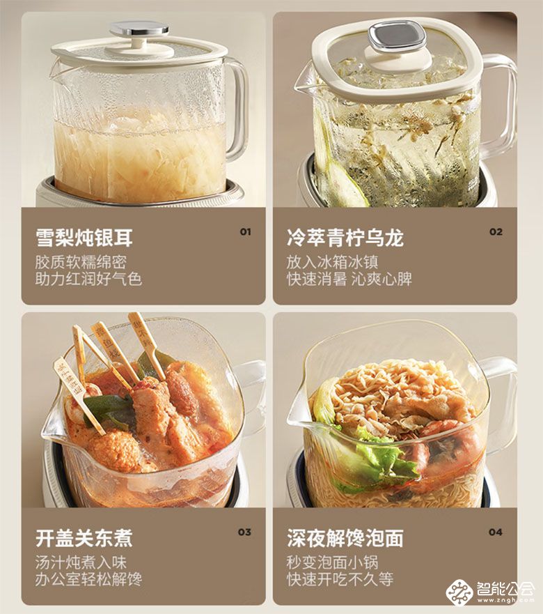 九阳百变养生壶WY103不仅是一款养生壶,更是一位全能的生活助手。它支持多种烹饪方式,可煮、可泡、可冷萃,满足您对不同食材的烹饪需求。无论是冬日里一碗暖心的雪梨炖银耳,还是夏日里一杯清爽的冷萃青柠乌龙,它都能轻松搞定。甚至深夜解馋时,煮一碗方便面也不在话下。四季轮转,润养不停,让您的每一餐都充满健康与美味。