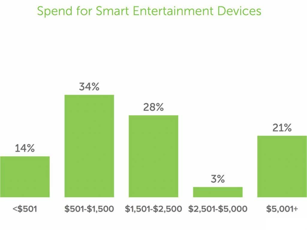 和家庭安防一样,绝大部分买单费用停留在500刀至1500刀之间。