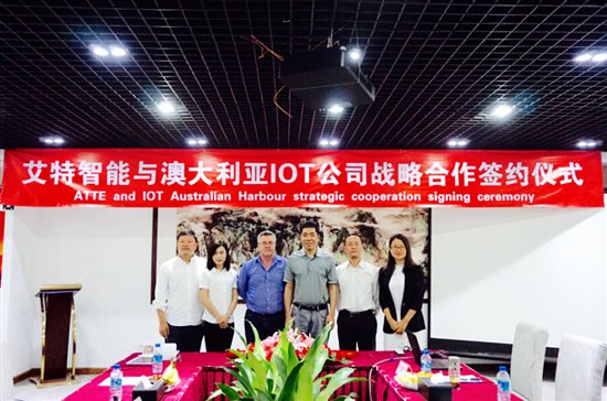 11月5日,“艾特智能与澳大利亚IOT公司战略合作签约仪式”在艾特智能总部圆满举行,IOT Australian Harbour(以下简称:澳港物联)总裁Nicholas Guy Birdseye先生、北京物联港焦向东先生、艾特智能总经理沈澈先生、海外销售总监江波涛先生出席,本次与澳大利亚澳港物联公司签约制定澳洲市场战略协议,系艾特智能大力拓展海外市场战略举措之一。